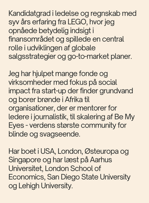 Som CFO-as-a-Service har jeg været ansvarlig for finansiel planlægning og analyse (FP&A), forbedret HR-processer, effektiviseret rekruttering, ledet projekter inden for skat og moms, styret strategiske udviklingsinitiativer, deltaget i bestyrelsesarbejde, fremmet virksomhedens internation-alisering og guidet intraprenørskabsprojekter.